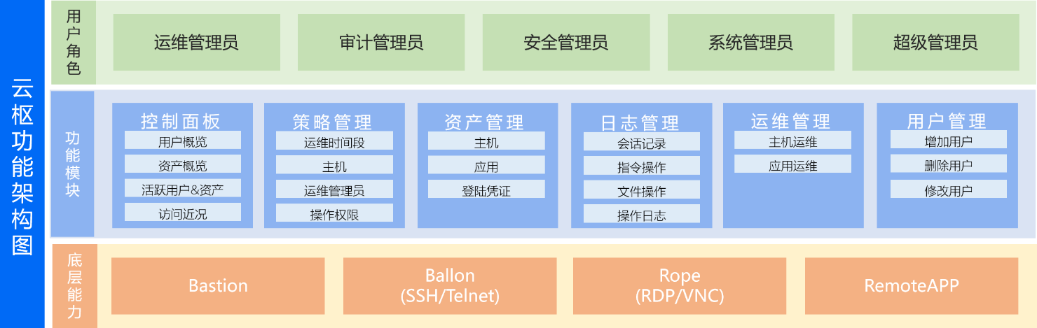 ????????基于數(shù)據(jù)中心運維安全管理角度出發(fā),通過集中化運維管控、統(tǒng)一運維管理、身份認(rèn)證與權(quán)限控制、運維訪問合規(guī)性控制、運維過程實時監(jiān)看、運維過程全程審計、自定義應(yīng)用發(fā)布等功能,為數(shù)據(jù)中心運維構(gòu)建一套完善的事前預(yù)防、事中監(jiān)控、事后審計的安全管理體系。