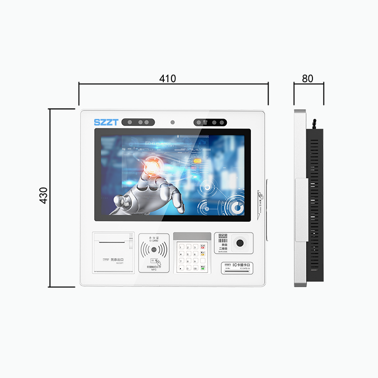 壁掛系列-ZT2830-I系列,15.6寸輕薄觸屏、鋼化玻璃面板搭配環(huán)繞式鋁合金包邊,輕量化設(shè)計(jì)、質(zhì)感十足。機(jī)身小巧輕便,對(duì)空間利用率高,壁掛使用,安全穩(wěn)固。標(biāo)配面板式憑條打印機(jī),永不卡紙,使用維護(hù)便捷高效。